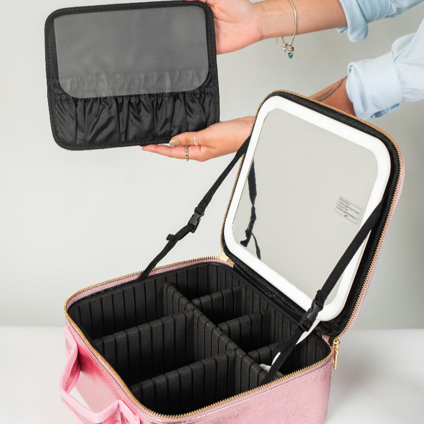 Introducing Aurora: the beauty bag that combines sophistication, practicality, and professional lighting to enhance your beauty at any moment.